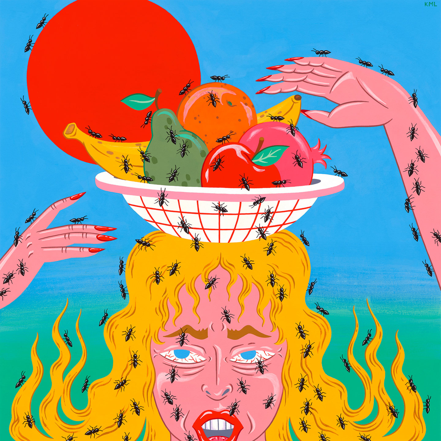 acrylic and acrylic gouache on watercolor paper, 19" x 19" image size