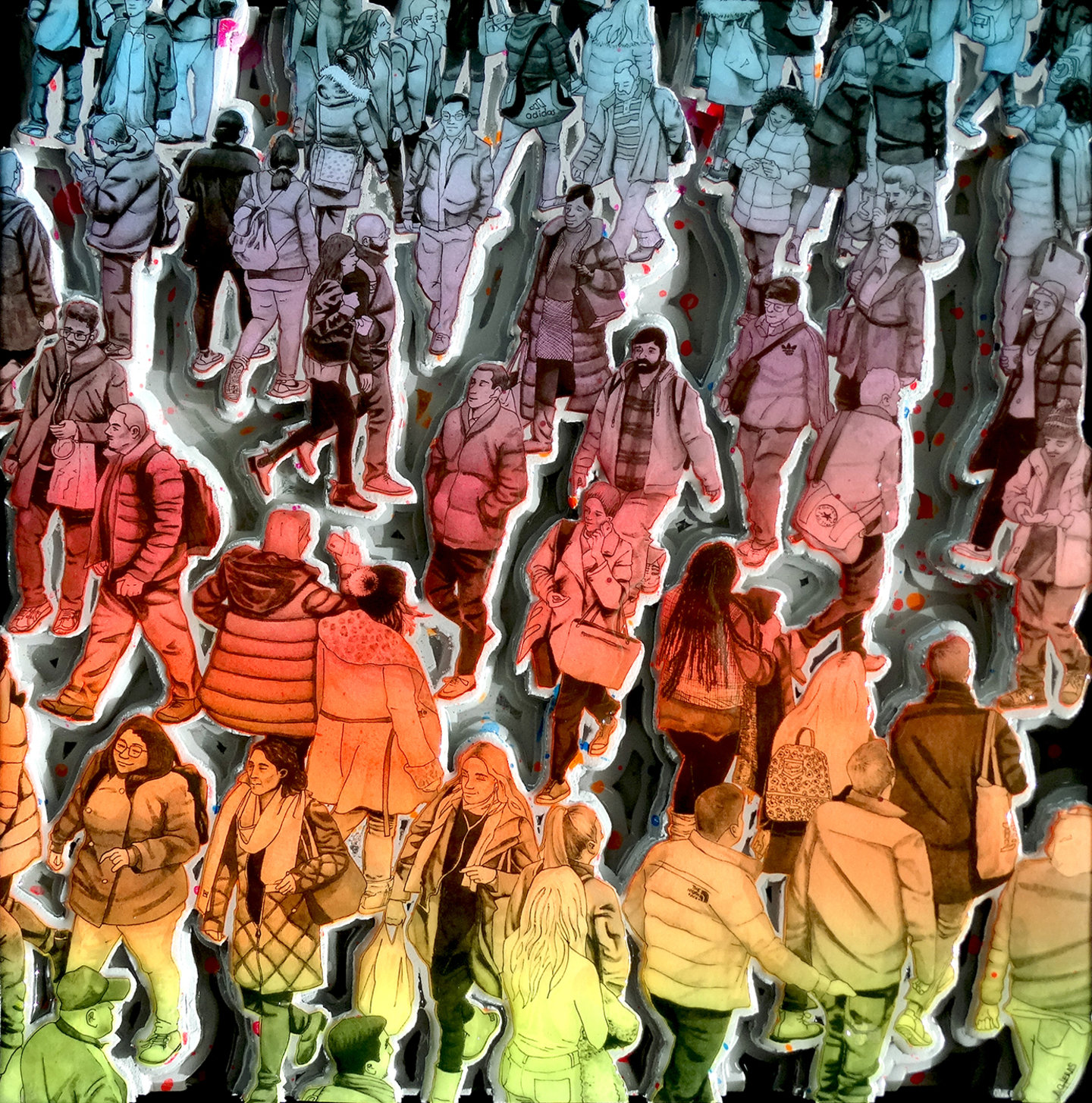 mixed media (foam and concrete on wood, acrylics, ink and epoxy resin), 12" x 12"
