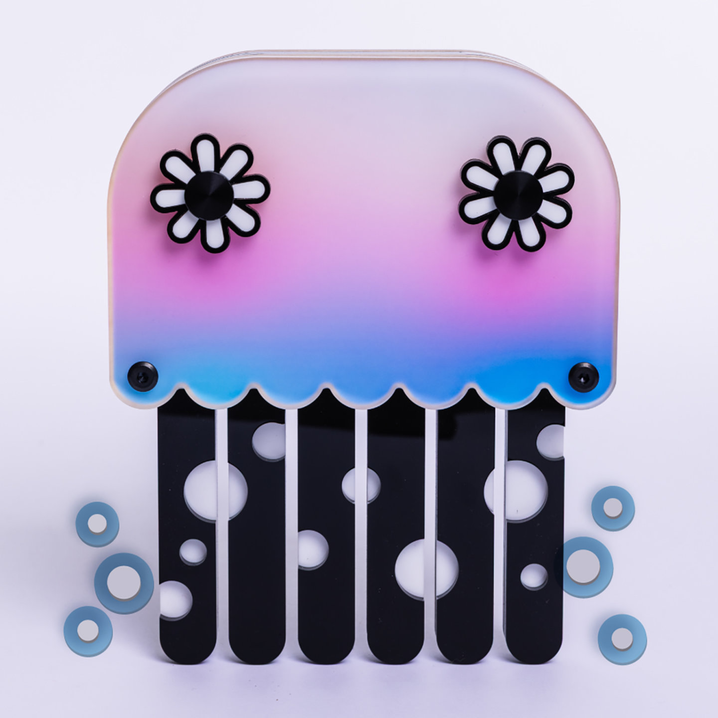 acrylic, powder-coated stainless steel and baltic birch wood sculpture, 12" (h) x 12" (w) x 3" (d)