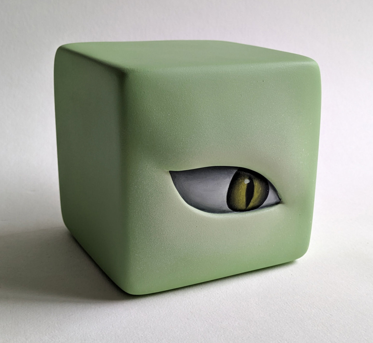 paint, apoxie sculpt and putty on wood, 4.5" (h) x 4.5" (w) x 4.75" (d)