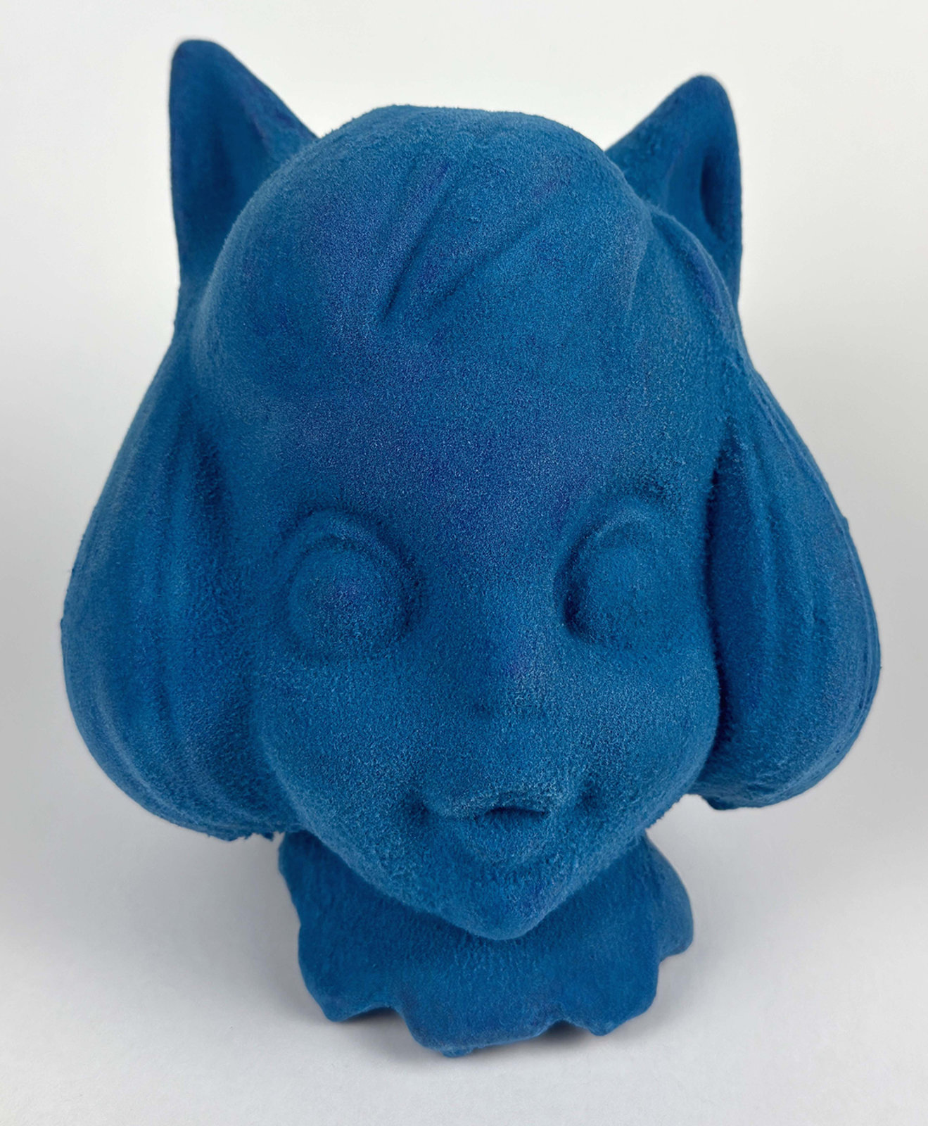 polyester, epoxy, crushed velvet, 9" (h) x 7" (w) x 6.5" (d)