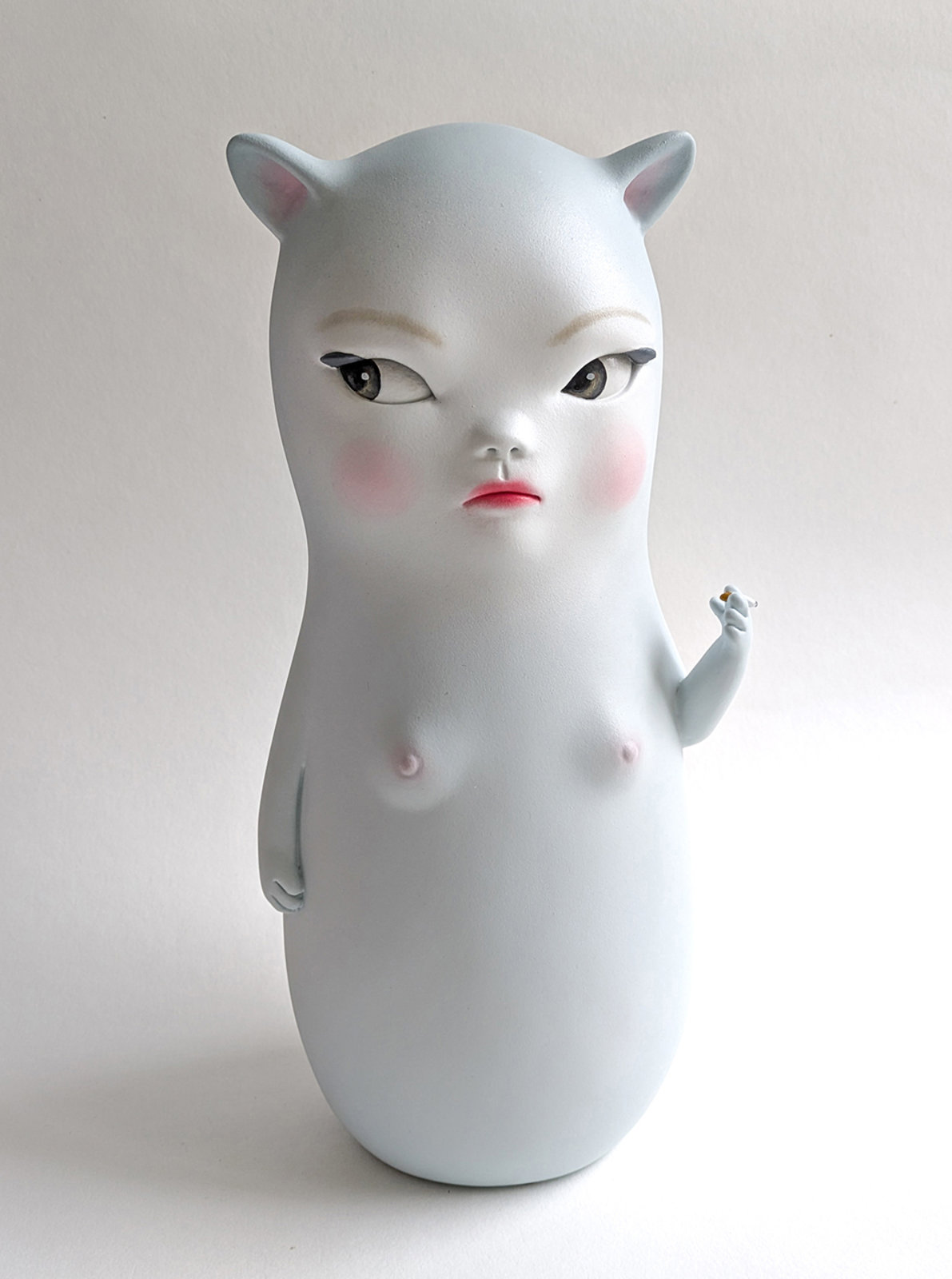 paint on a mixed media sculpture, 13.25" (h) x 6.75" (w) x 5.5" (d)
