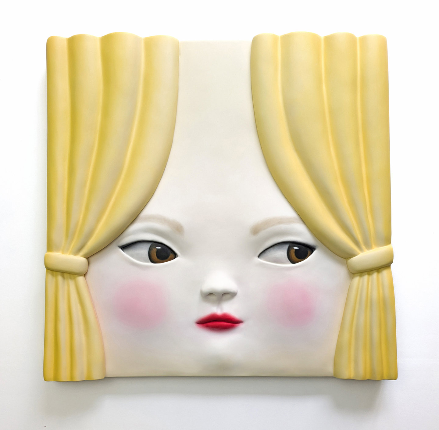 painted resin on wood, 35.5" (h) x 35.5" (w) x 3" (d)