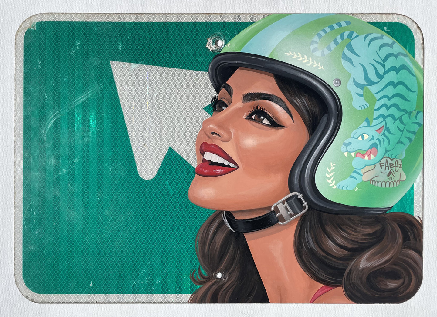 acrylic on metal sign, 15" x 21"