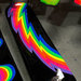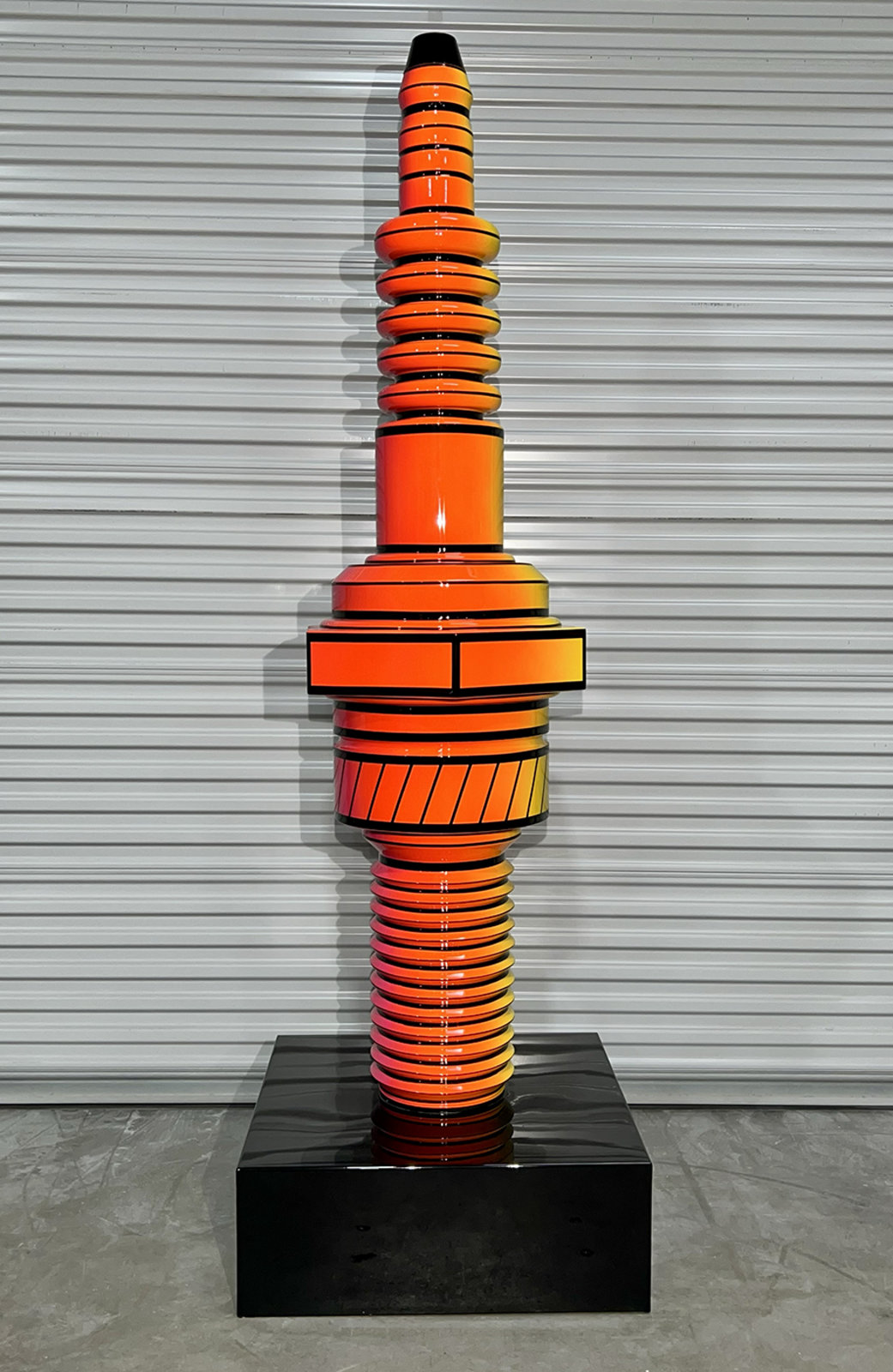 fiberglass painted in House of Kolor Neon paint and HOK Show Clear with a steel base, 8' (h) x 30" (w) x 30" (d)