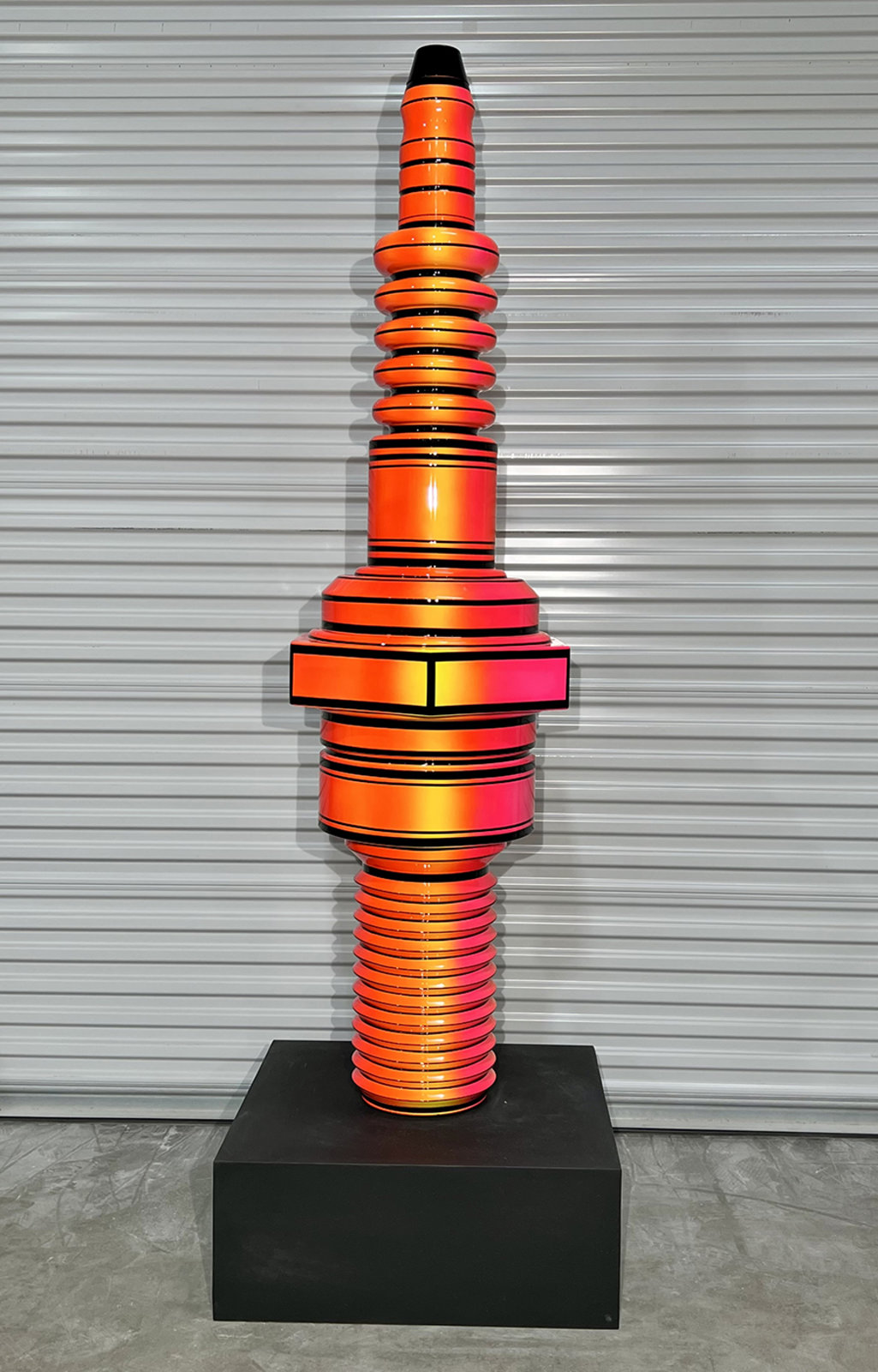 fiberglass painted in House of Kolor Neon paint and HOK Show Clear with a steel base, 8' (h) x 30" (w) x 30" (d)