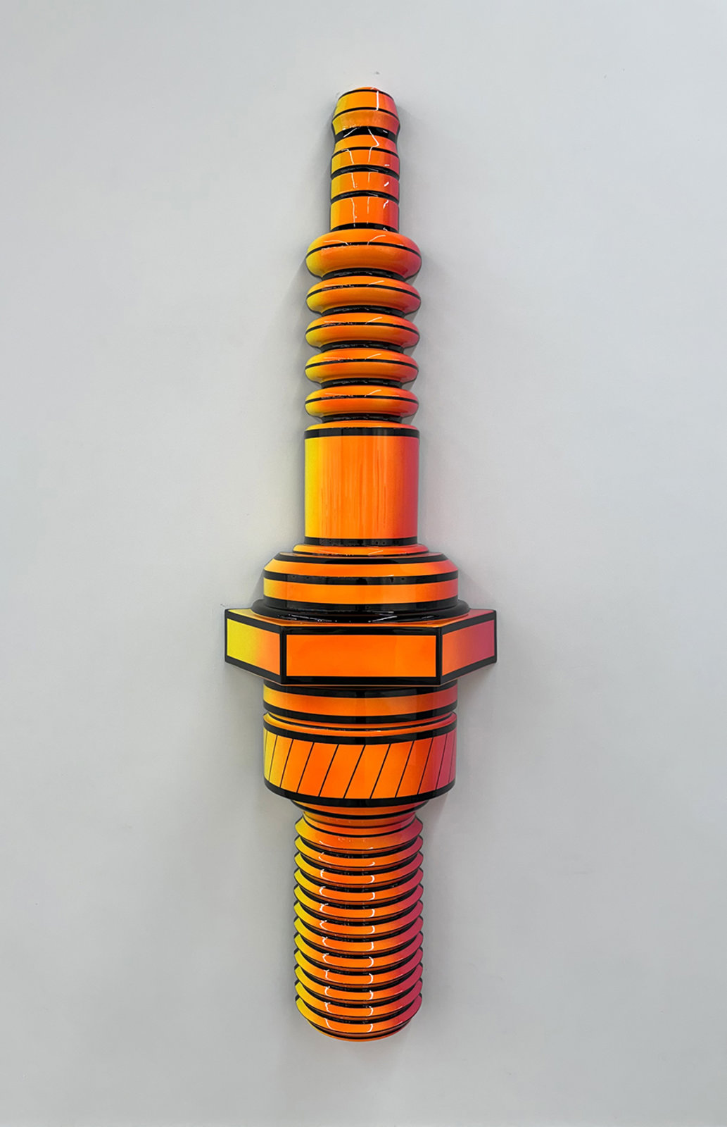 wall-hanging with flat back fiberglass painted in House of Kolor Neon paint and HOK Show Clear, 7' 1" (h) x 2' 2" (w) x 1' (d)