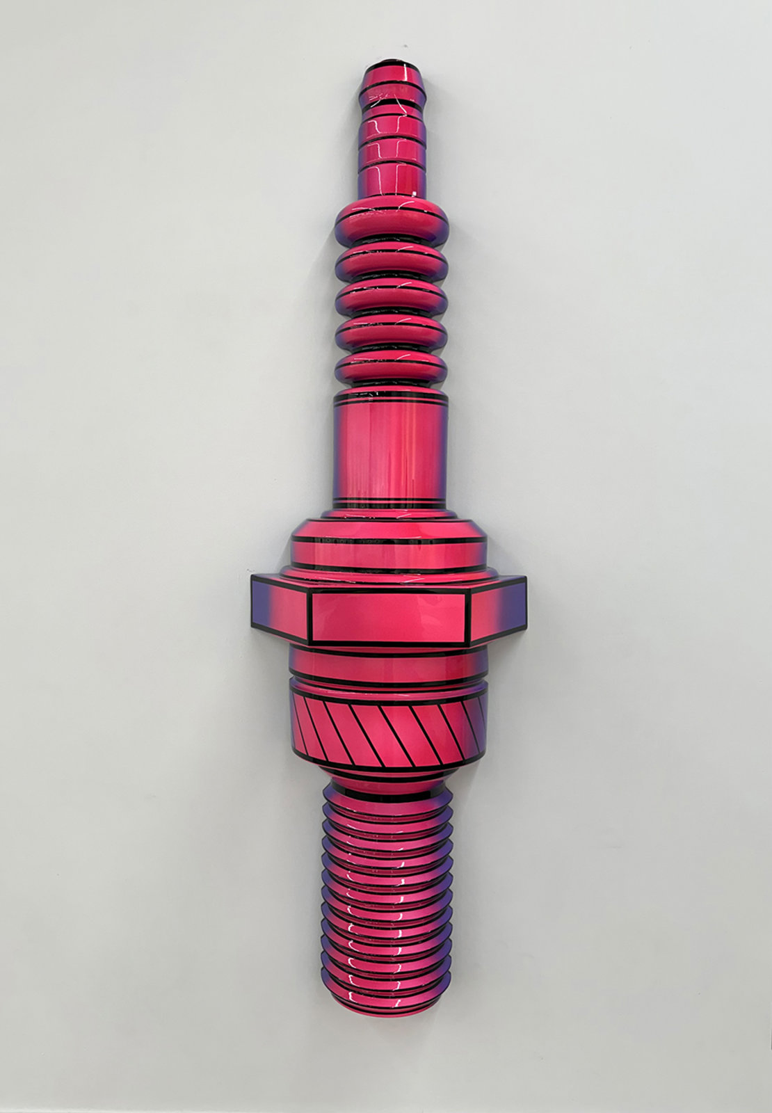 wall-hanging with flat back fiberglass painted in House of Kolor Neon paint and HOK Show Clear, 7' 1" (h) x 2' 2" (w) x 1' (d)