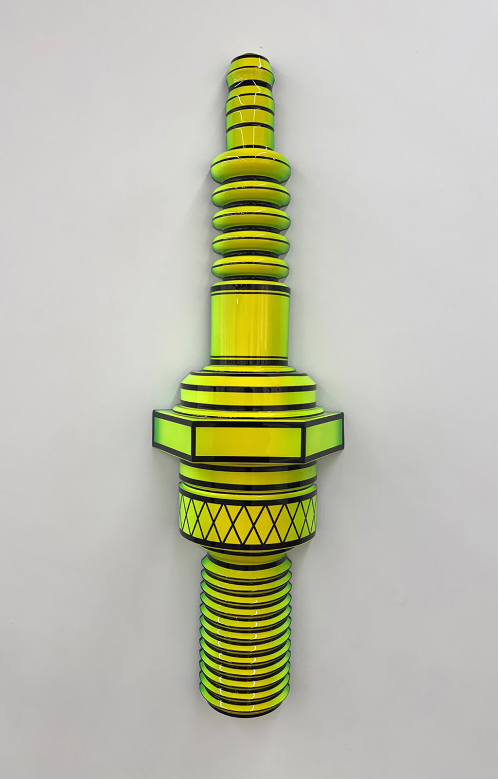 wall-hanging with flat back fiberglass painted in House of Kolor Neon paint and HOK Show Clear, 7' 1" (h) x 2' 2" (w) x 1' (d)
