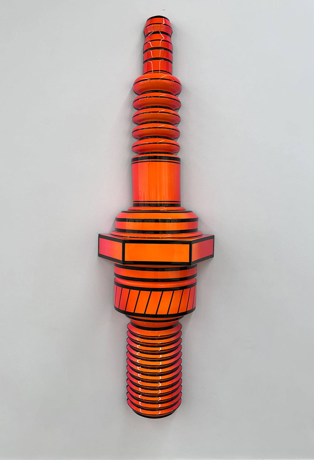 wall-hanging with flat back fiberglass painted in House of Kolor Neon paint and HOK Show Clear, 7' 1" (h) x 2' 2" (w) x 1' (d)