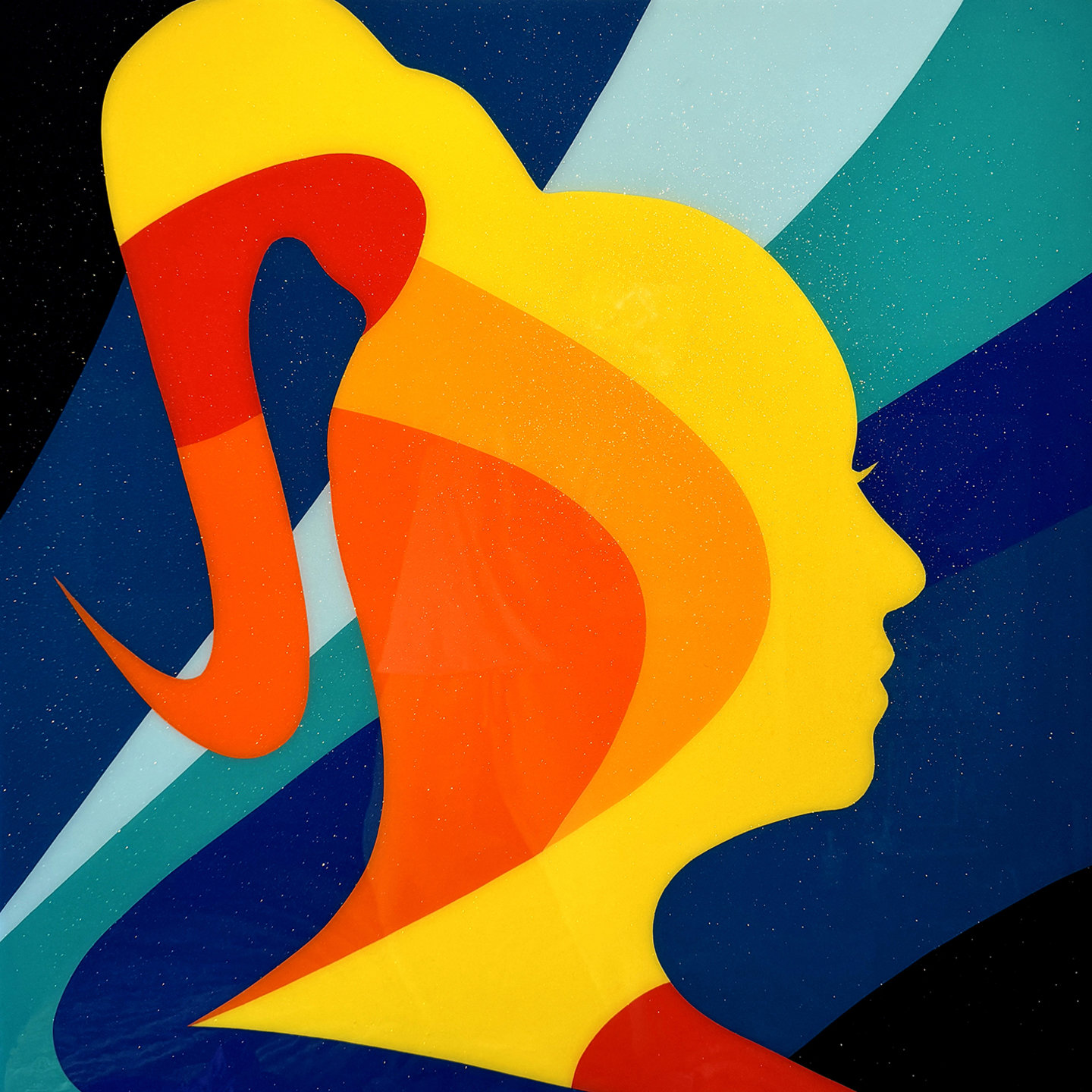 1 of 1 hand-painted acrylic, resin and glitter on wood, 36" x 36"