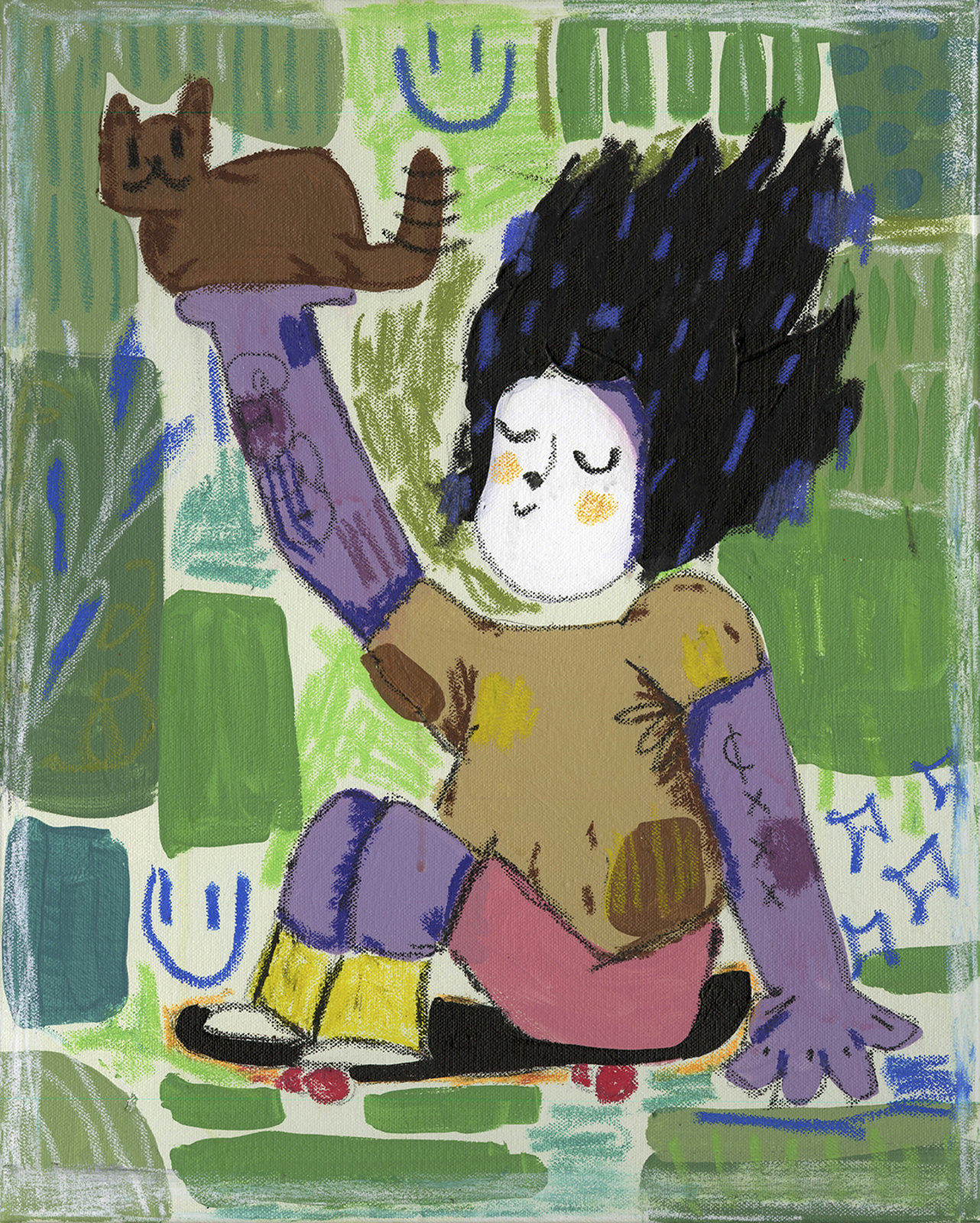 acrylic paint and oil pastel on canvas, 20" x 16"